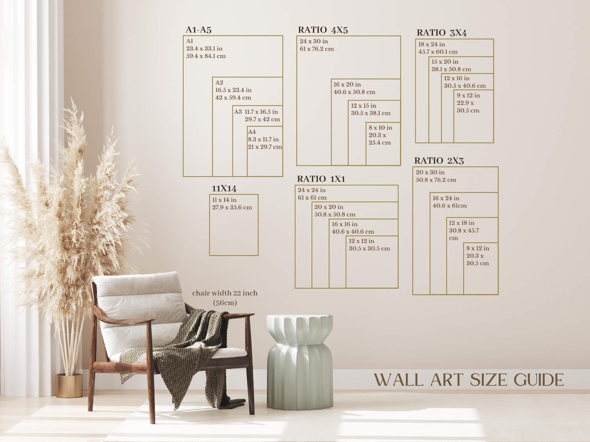 We offer a wide selection of print sizes to fit your wall space, frame, and decor style. All measurements are listed in inches (in).